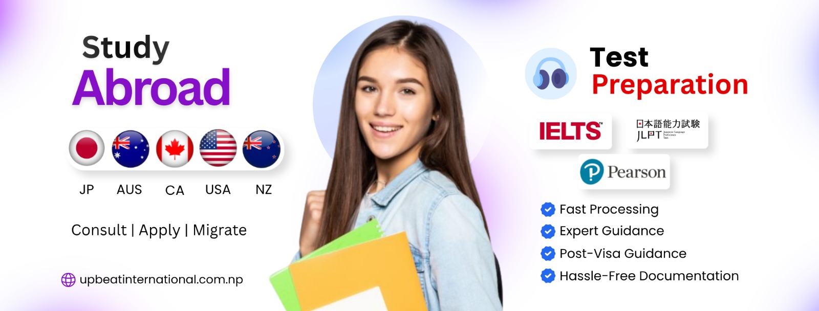 Upbeat International Education Consultancy Pvt. Ltd. is a new name with an experienced team of professional and dedicated team in Abroad Study Field and has vast knowledge in the respected field. If you are here then you are in the most helpful and well qualified consultant. We assist students or parents in making educational decisions and giving advice for test preparation, visa preparation documentations etc. Our team of experienced consultants and education experts work closely with students to understand their individual needs, goals, and aspirations, and provide customized solutions to help them choose the right course, university, and country for their academic and career aspirations. We offer a wide range of services including career counseling, university selection, admission guidance, scholarship assistance, visa and immigration support, pre-departure orientation, and more. Our team has extensive knowledge and expertise in the education industry, and we work with top universities and colleges around the world to help students find the best possible education opportunities.